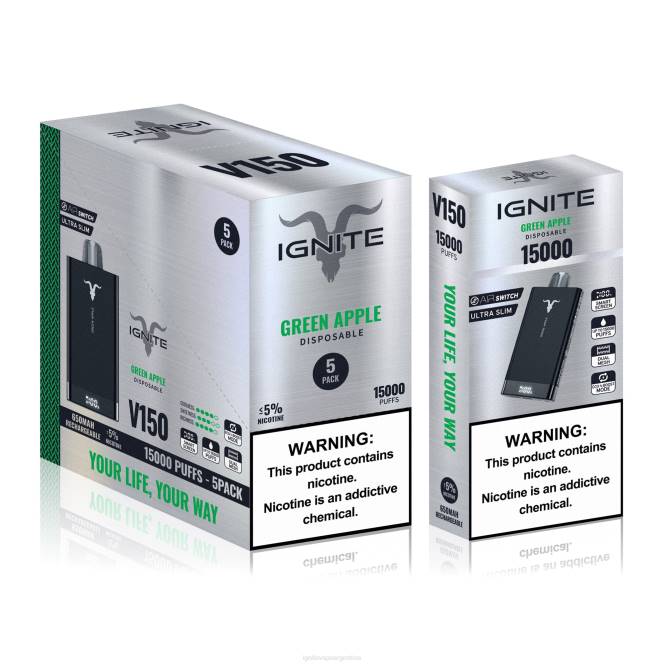 IGNITE Cigarrillo Electrónico manzana verde – IGNITE V150 paquete de 5 bolígrafos vaporizadores V6RV85